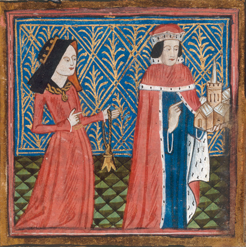 Eleanor Cobham with her husband the Duke of Gloucester (1431), and the wedding of Elizabeth Woodville and Edward IV (15th century). Via WikiCommons.