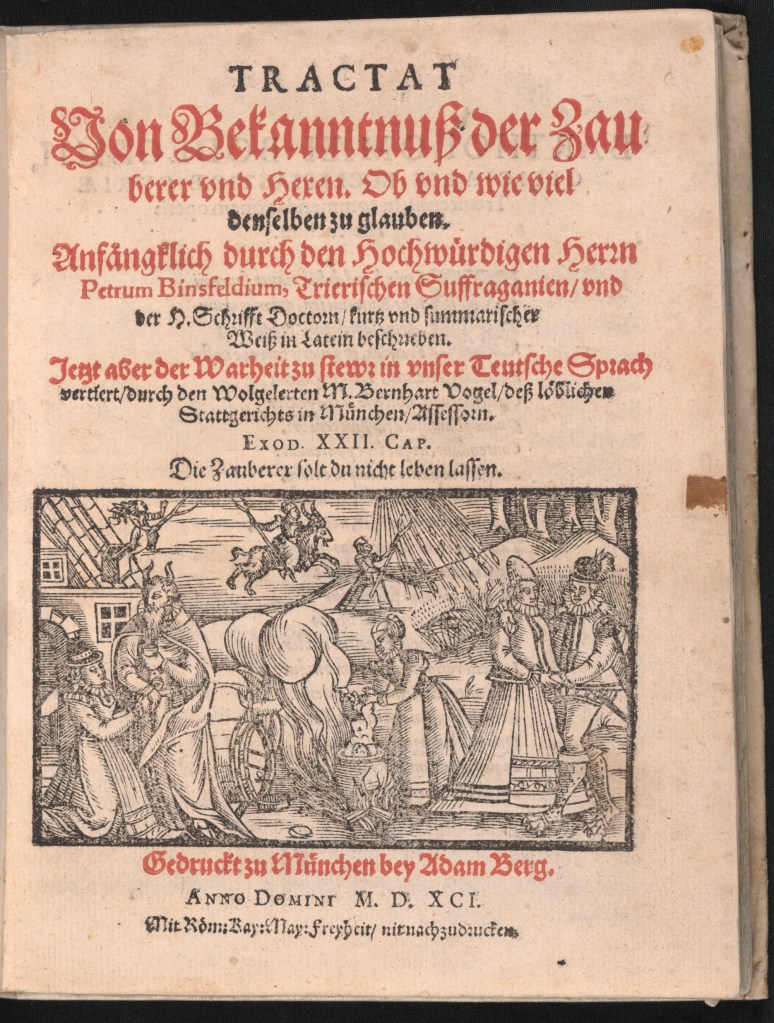 With questions starting to circulate about their methods, and particularly after the high-profile execution of Flade, Binsfeld was under pressure to defend himself. In 1589, the year of Flade’s execution, he printed at Trier in both Latin and German his “Treatise on the Confessions of Witches and Sorcerers” justifying his ideas and actions. This was published once again two years later. Despite this, by the year of Loos’ recantation, much of the steam of the past six years of persecution had blown away. Accusations of witchcraft by no means disappeared, and the region was still plagued by intermittent trials for decades to come. But the main days of the Trier witch hunts were over.