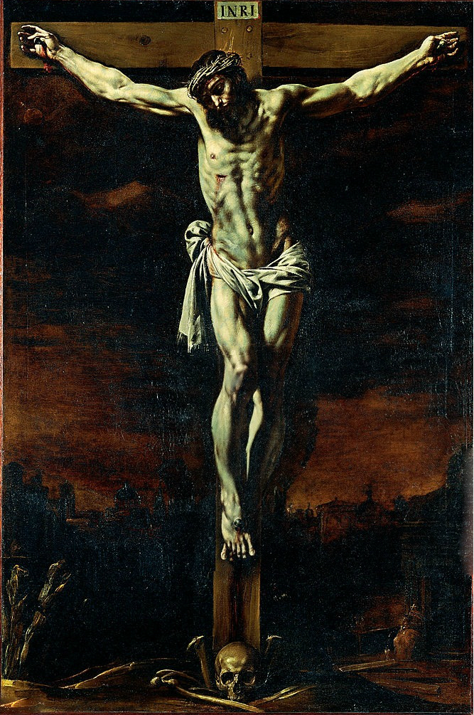 It would be incredibly wrong of me not to mention Tanzio’s Crucifixion (1630). Not much is known about Tanzio’s life, his whereabouts, the chronology of his works. And because of this lack of information, he seems to have slipped through the sands of time. Upon studying his artworks, however, it was made glaringly obvious to me the fundamental influence of Caravaggio on Tanzio’s artistic production. Tanzio’s radicalisation of the depiction of Christ was completely unprecedented. At the time, this painting was the apotheosis and reinvigoration of all paintings of the Passion that had come before. The canvas is overcome with an all-pervasive emotion, radical intensity and piercing theatricality. The anatomically perfect body of Christ dominates, hanging lifeless from the Crucifix, hands and feet bloody from being nailed to the Cross. The scene is harrowing, passionate and psychologically intense, and the memento mori (a symbol of the inevitability of death) at the foot of the Cross only adds to the already overwhelming emotion of the scene.